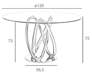 Kerek üveglapos étkezőasztal, diófa színű formabontó modern fa lábakkal.
