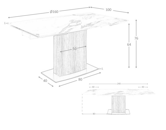 ACD – 1133 BLEANO Walnut | bővíthető kerámia étkezőasztal 160-240 – white marbe