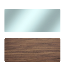 Anyag: diófafurnérozott MDF, edzett üveg