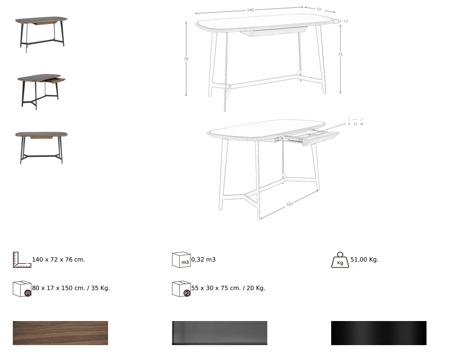 – Fiókok belső anyaga: 0,5 mm vastag natúr dió furnérozott fa
