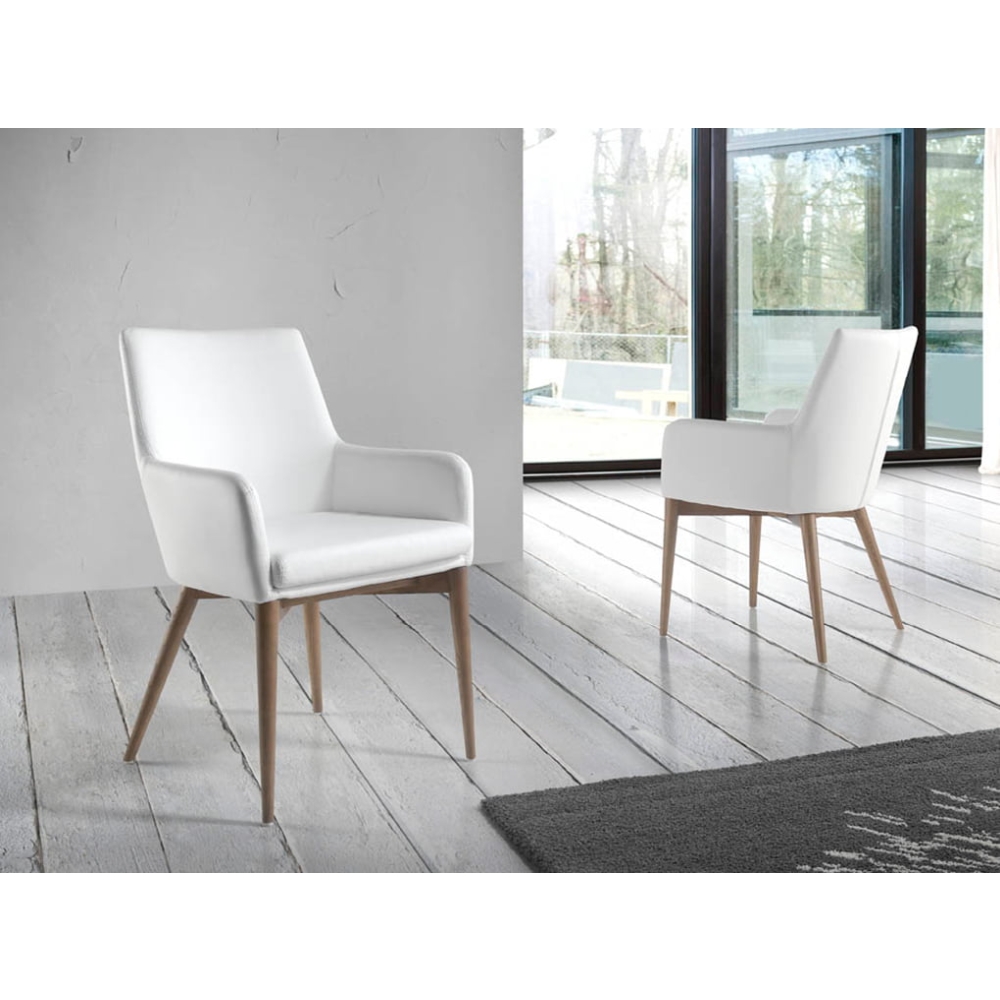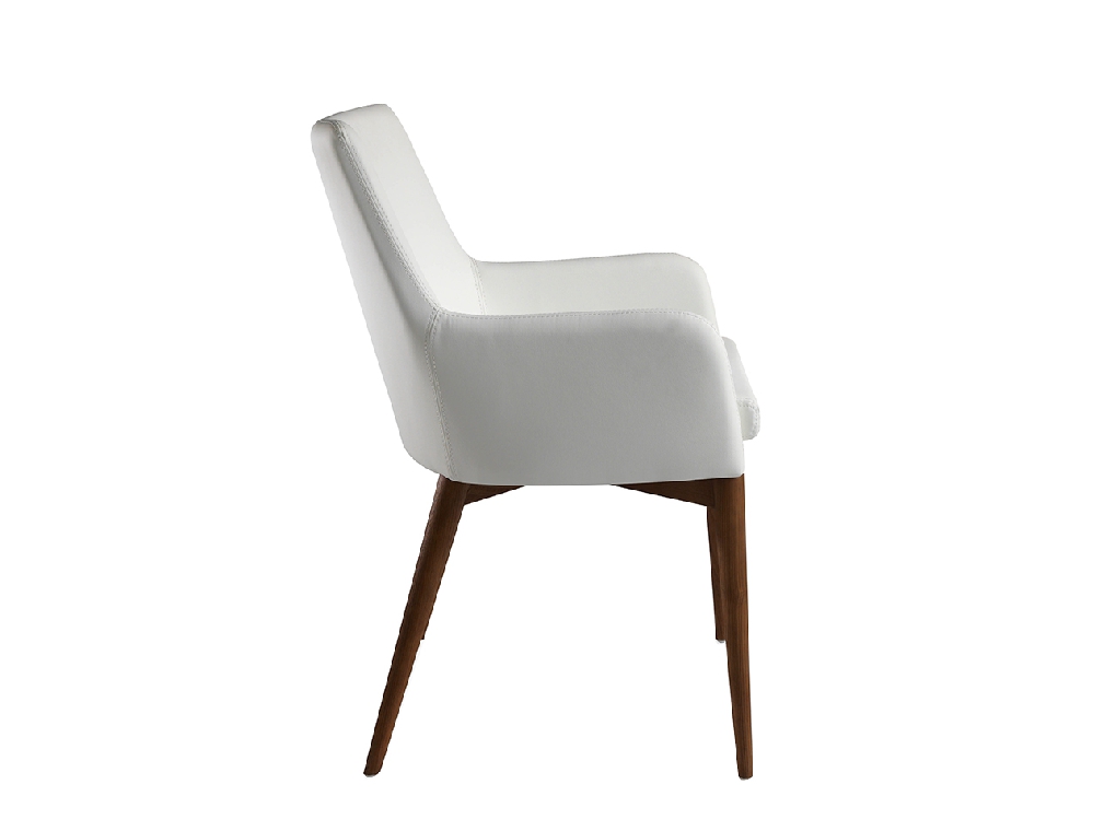 Modern dizájn szék karfákkal , ülő- és háttámlával fehér szintetikusbőr kárpitozással .