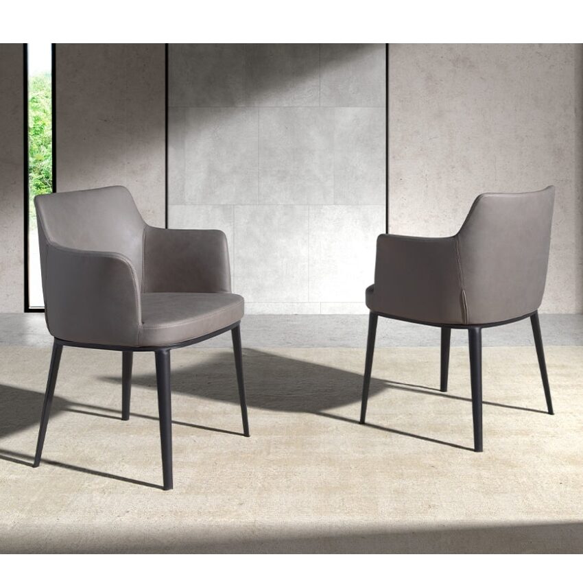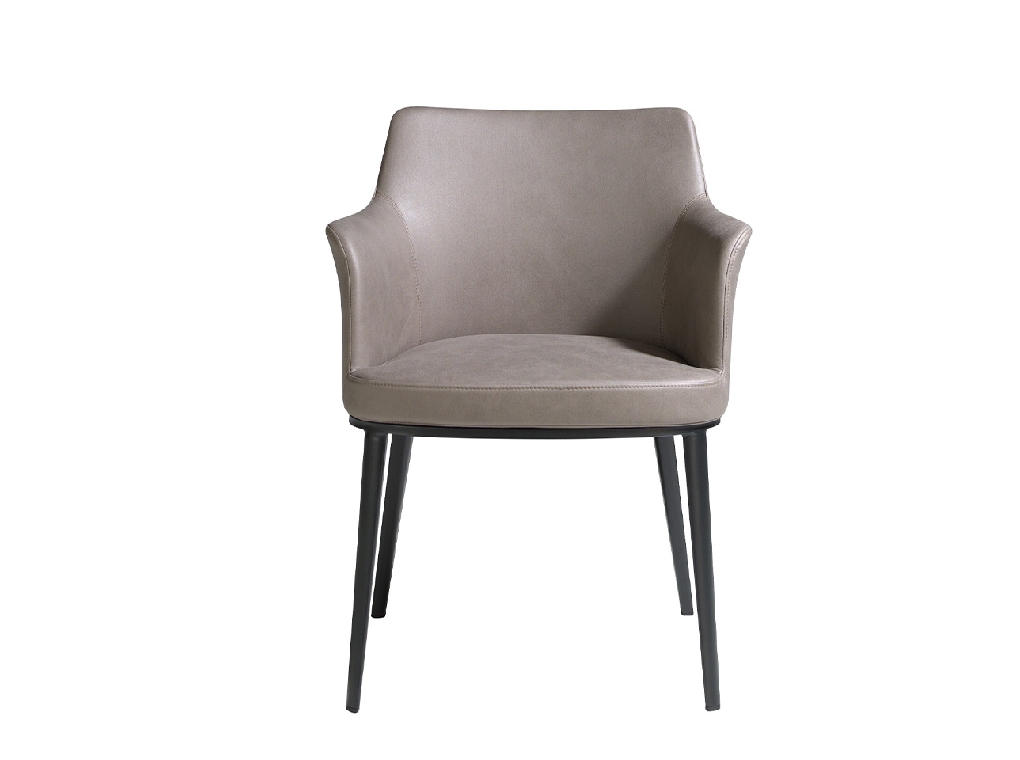 Modern dizájn karfás szék , ülőfelülettel és háttámlával mink színű szövet kárpitozással . Avantgárd, mégis időtlen fekete rozsdamentes acél lábai miatt konyhája vagy étkezője nélkülözhetetlen kellékévé válik.