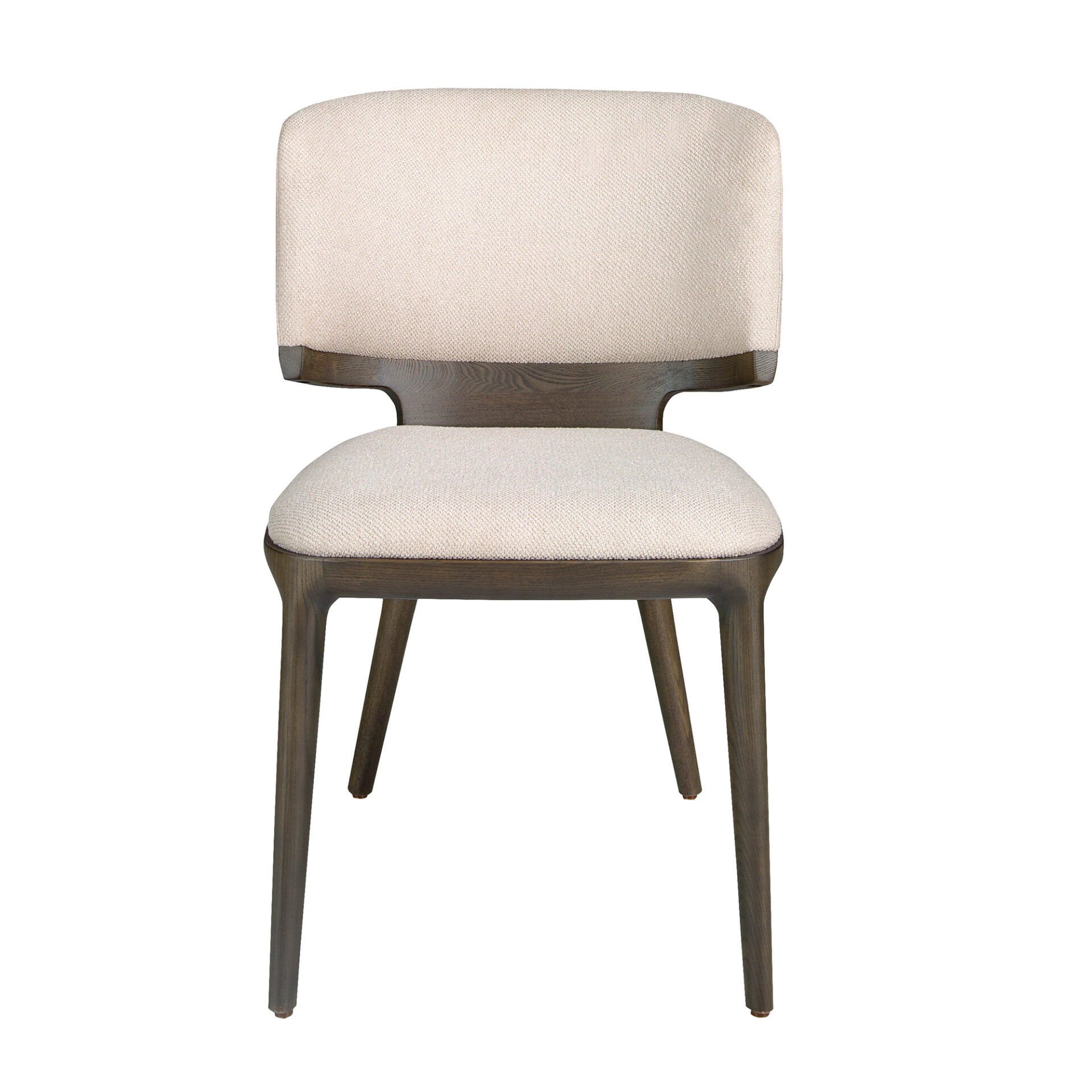 odern dizájn szék világosszürke anyaggal kárpitozott ülőfelülettel és háttámlával . Sötét kőris színű tölgyfa lábai avantgárd, mégis időtlen stílusban nélkülözhetetlenek konyhájában vagy étkezőjében.