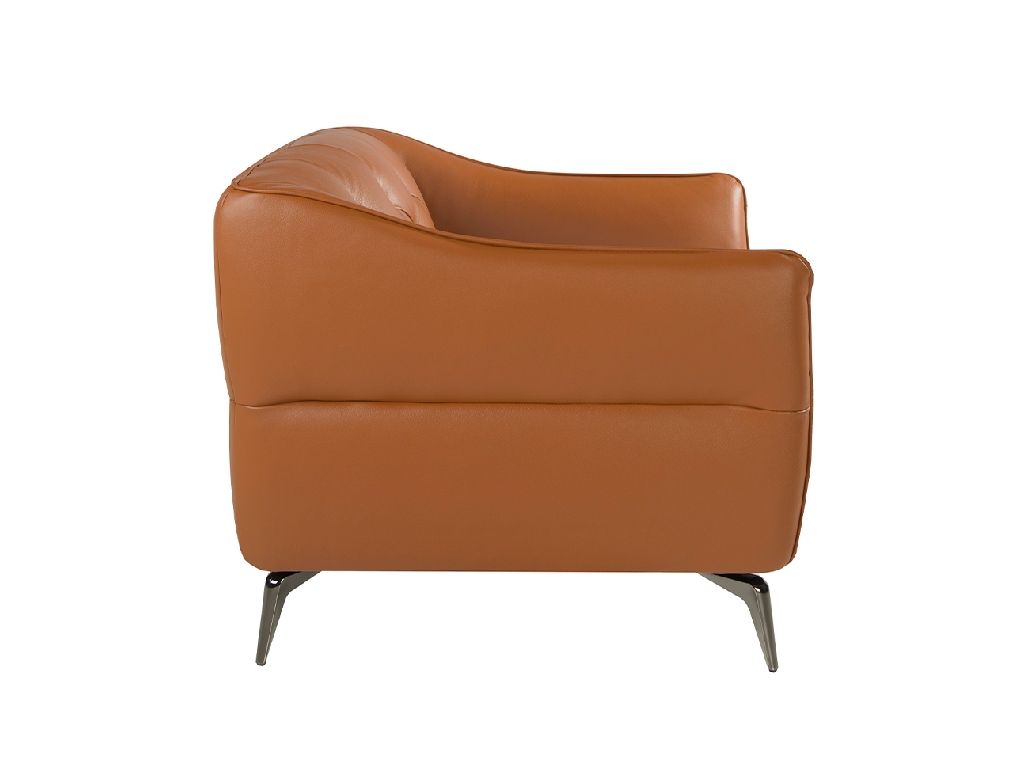 Chester karosszék modern dizájnú karfákkal , ülőfelülettel és háttámlával barna földagyag színű marhabőr kárpitozással . Ez a chester fotel a dizájn és a kényelem tökéletes kombinációja, mind stílusához, mind pedig sötétített rozsdamentes acél lábaihoz.