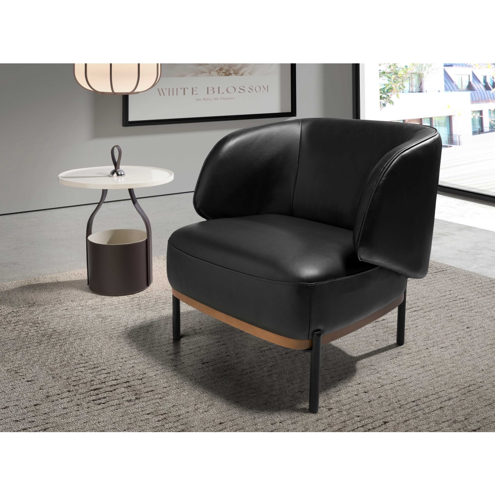 Modern dizájn karosszék ülő- és háttámlával, fekete marhabőr kárpitozással . Mind stílusát, mind fekete rozsdamentes acél lábait tekintve ez a fotel tökéletes kombináció a dizájn és a kényelem között.