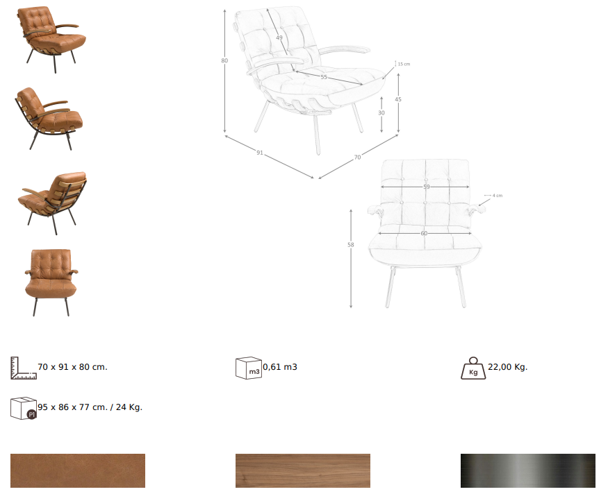 – Háttámla kárpitozása: 1,25 mm vastag szarvasmarha eredetű bőr