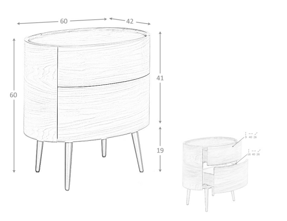 – A 0,5 mm vastag natúr dió furnérból készült elegáns és kifinomult éjjeliszekrény olyan modern és meleg hangulatot kölcsönöz hálószobájának, amit keres.