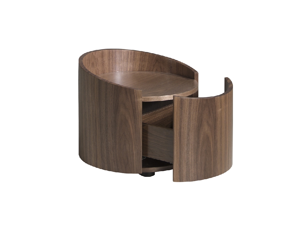 Modern dizájnú éjjeliszekrény fa szerkezettel , natúr dió furnérral .