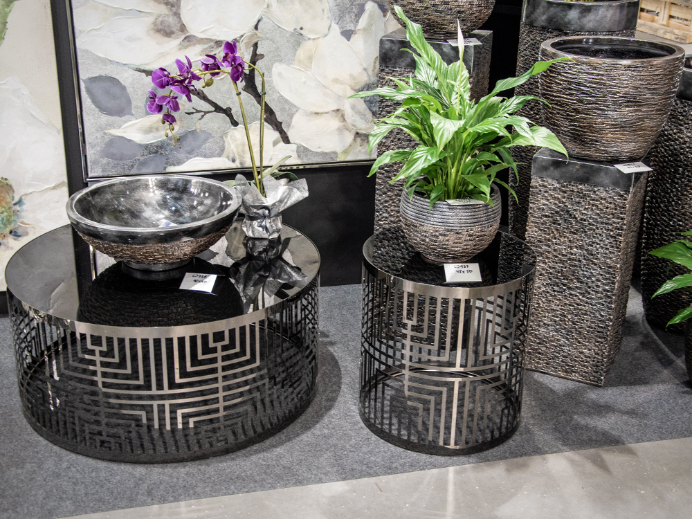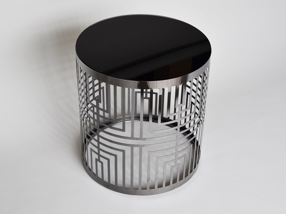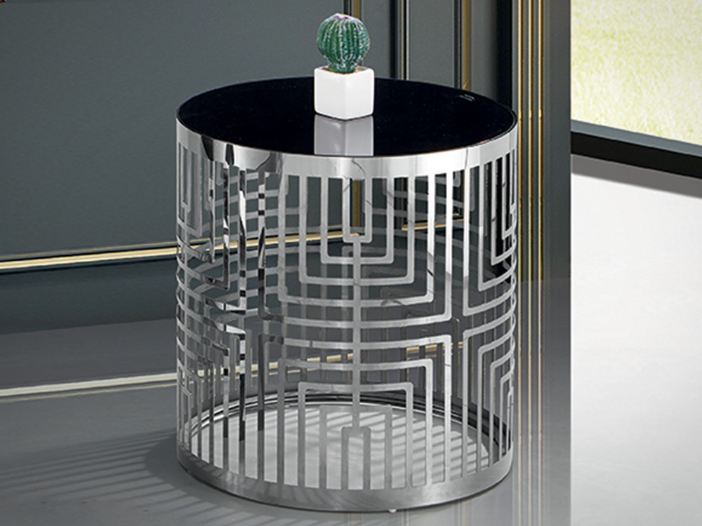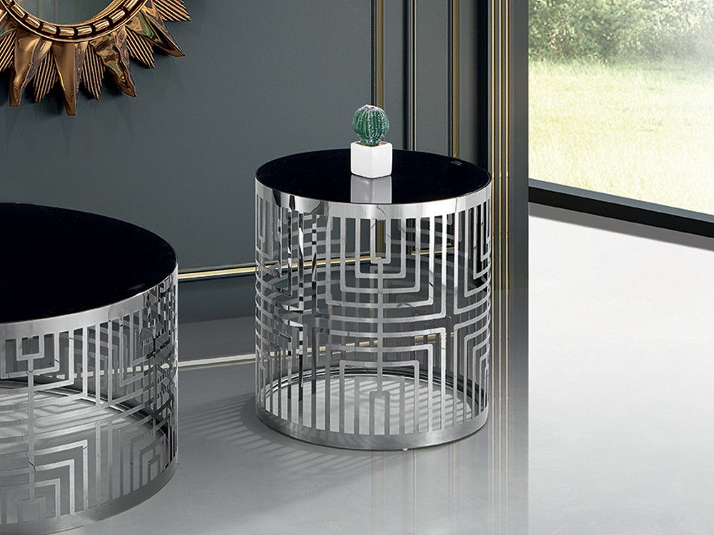 Modern lerakóasztal ezüst színű vázzal, fekete üveglappal