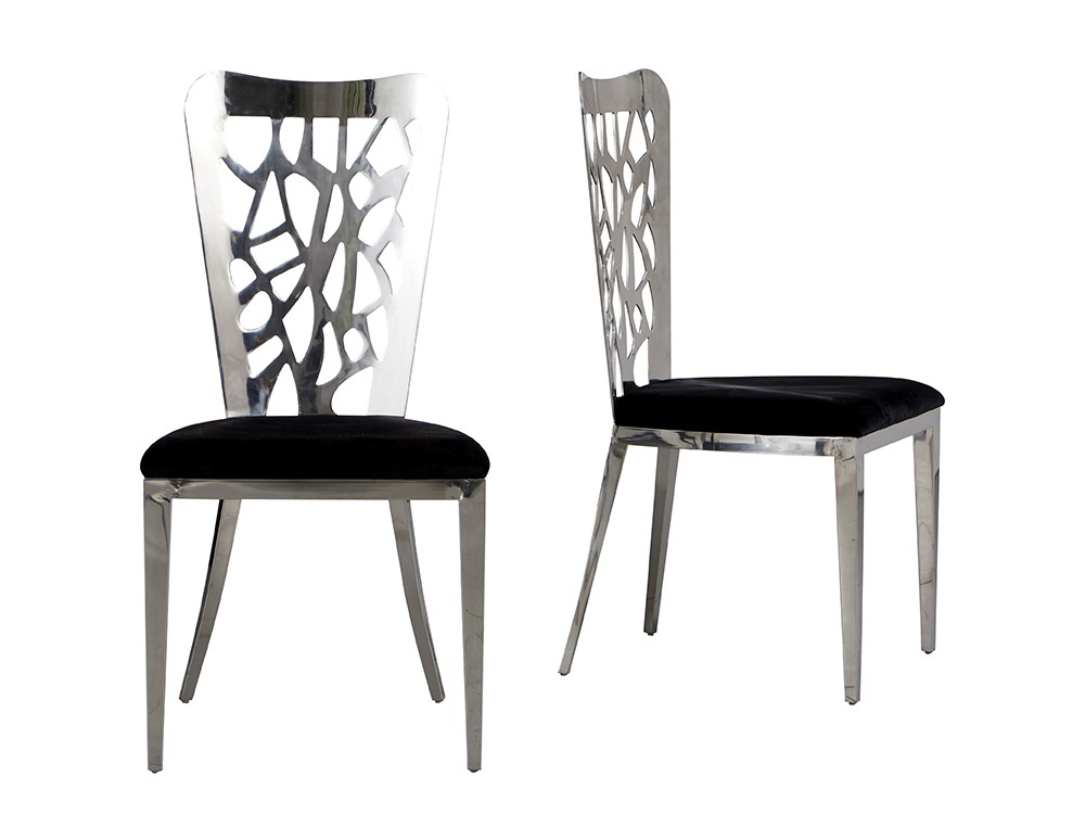Elegáns velúr borítású szék krómozott acél vázzal, fekete színben.
