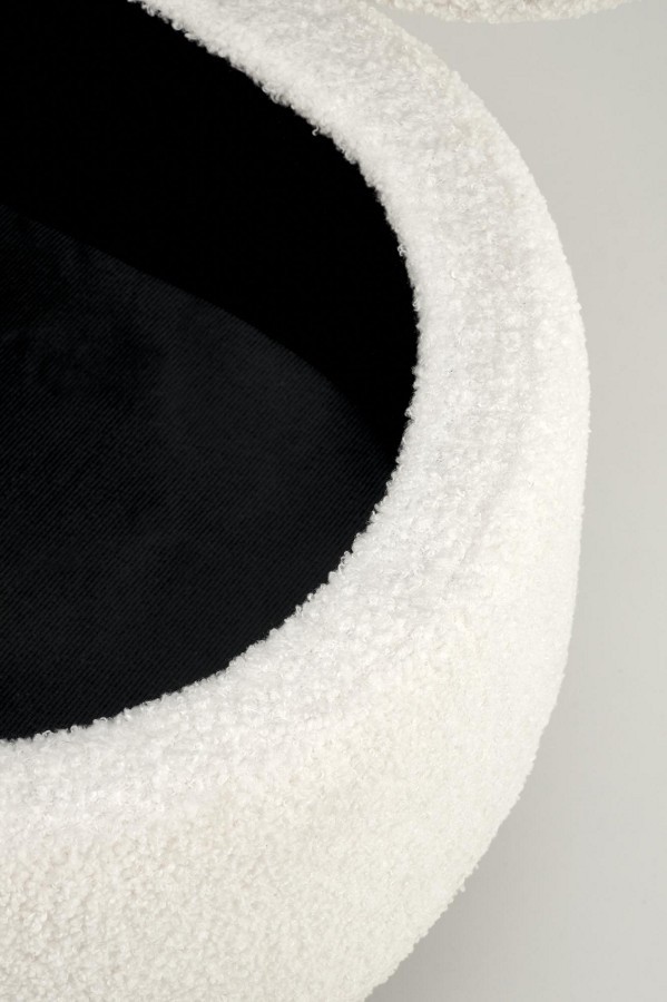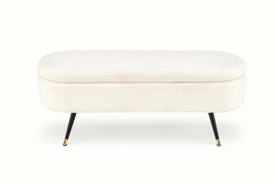 Trendi ülőpad/puff fekete-arany színű pórszórt acél lábakkal, elegáns bouclé szövet bevonattal.