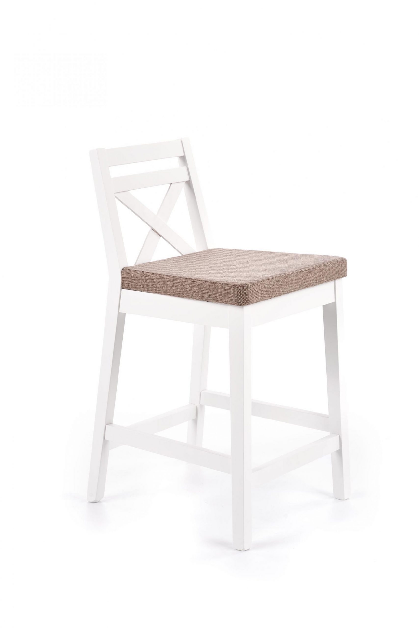 Fix magasságú alacsony bárszék tömörfa lábbal, szövet kárpitozással, lábtartóval. A bárszéket kimondottan alacsony konyhapultokhoz, bárasztalokhoz ajánljuk.