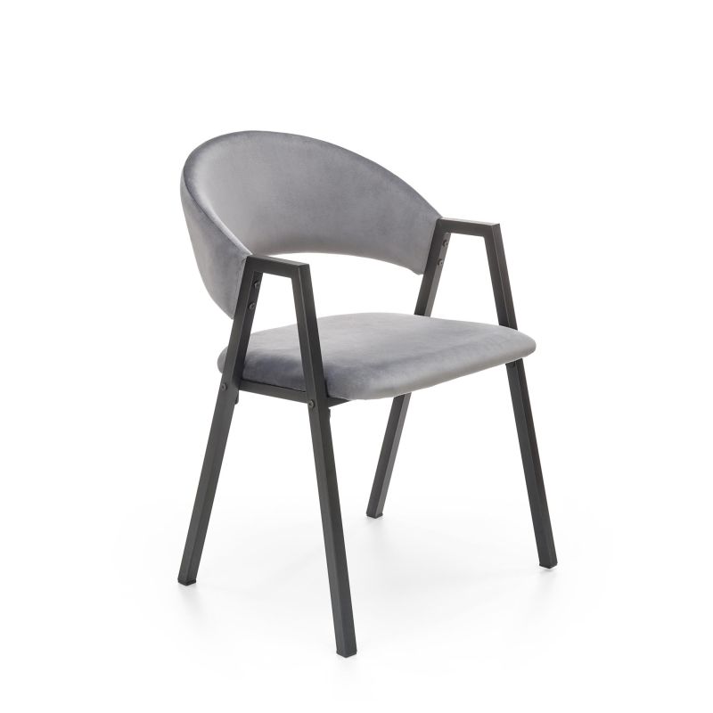Karfás étkezőszék porszórt acél lábakkal, trendi bársony szövet bevonattal.