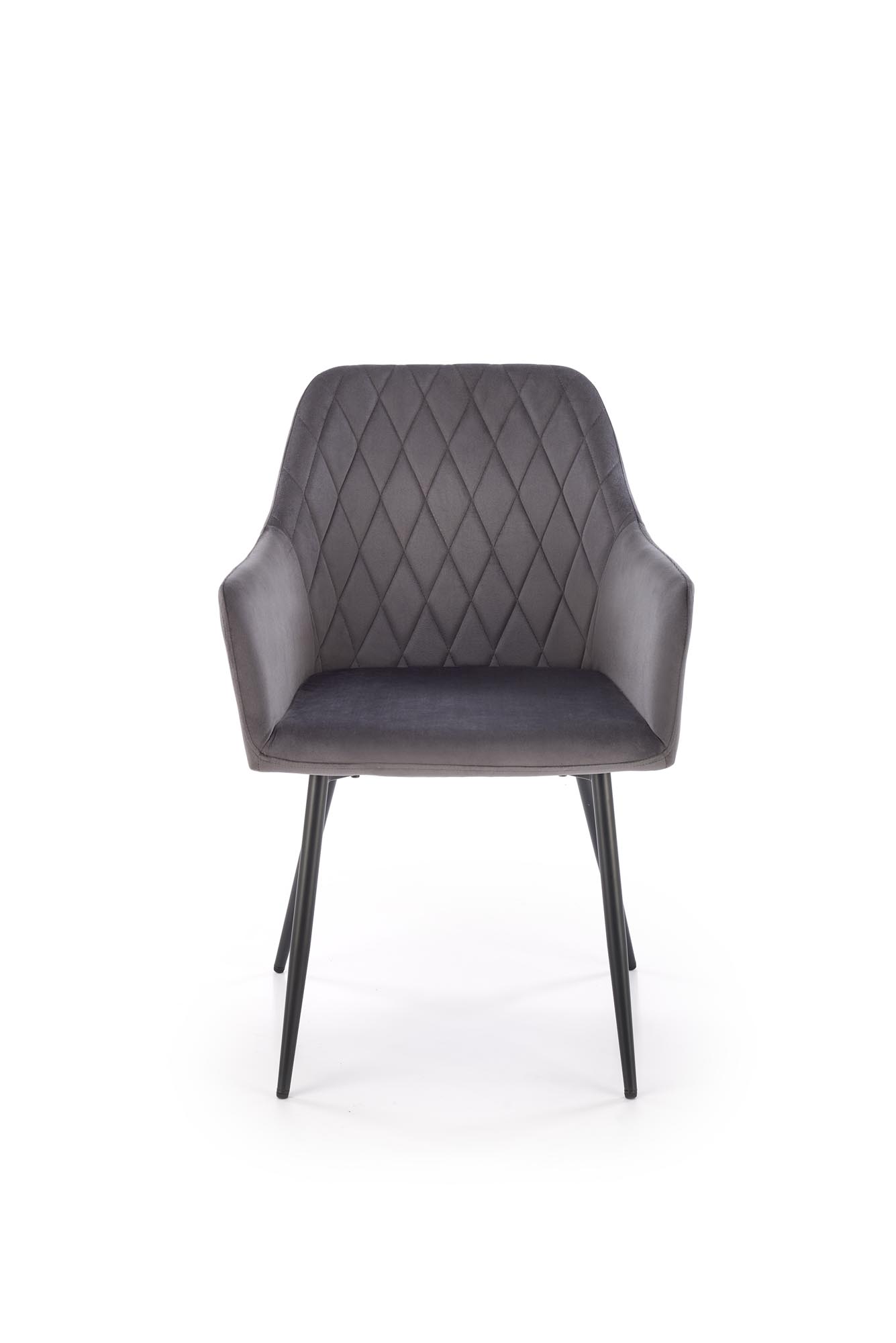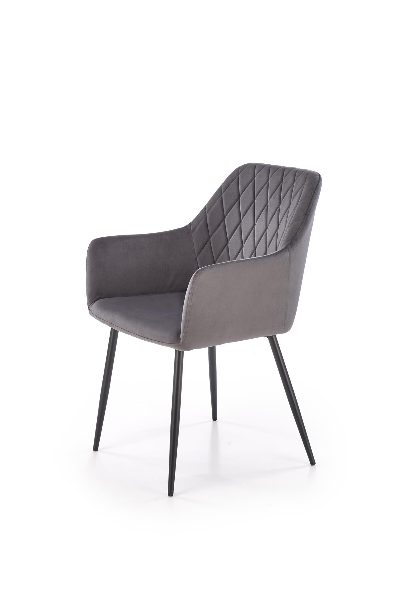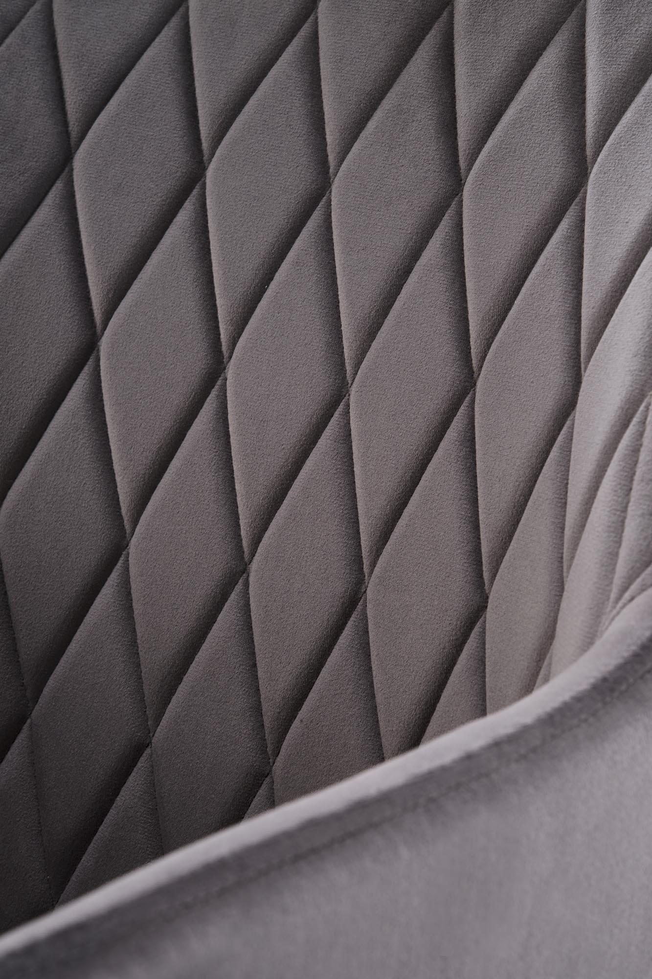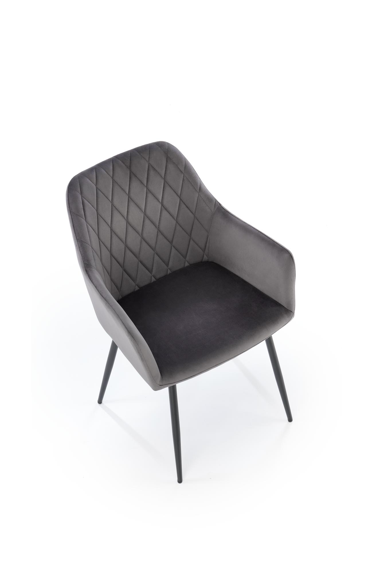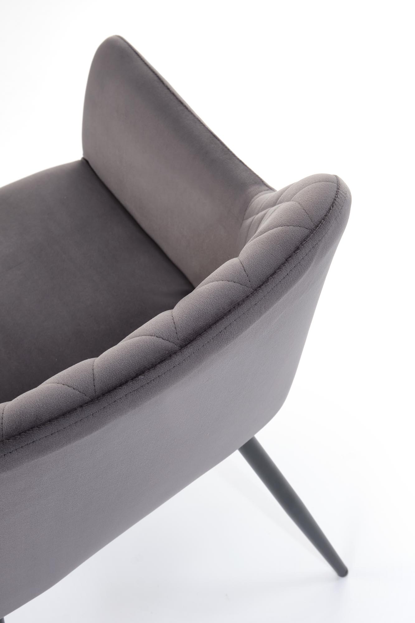 Elegáns étkezőszék porszórt acél lábakkal, bársonyszövet bevonattal.