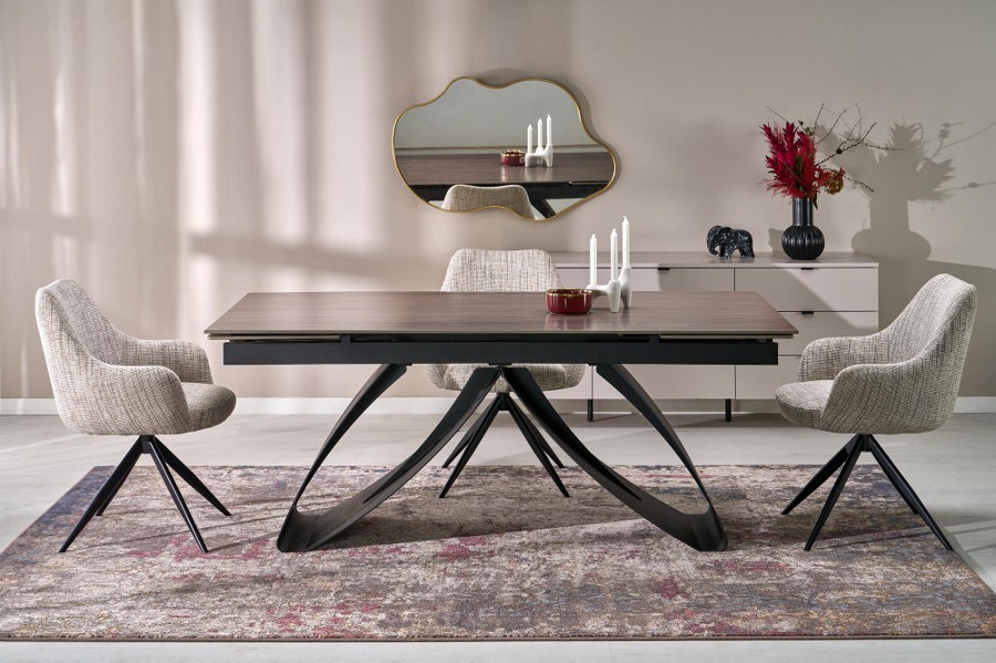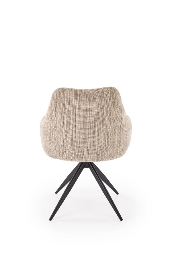 Modern stílusú, kényelmes étkezőszék fém lábakkal és szövetkárpittal. A 360°-ban forgatható ülés praktikus megoldás étkezőbe vagy irodába.