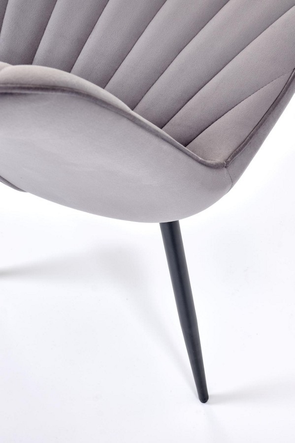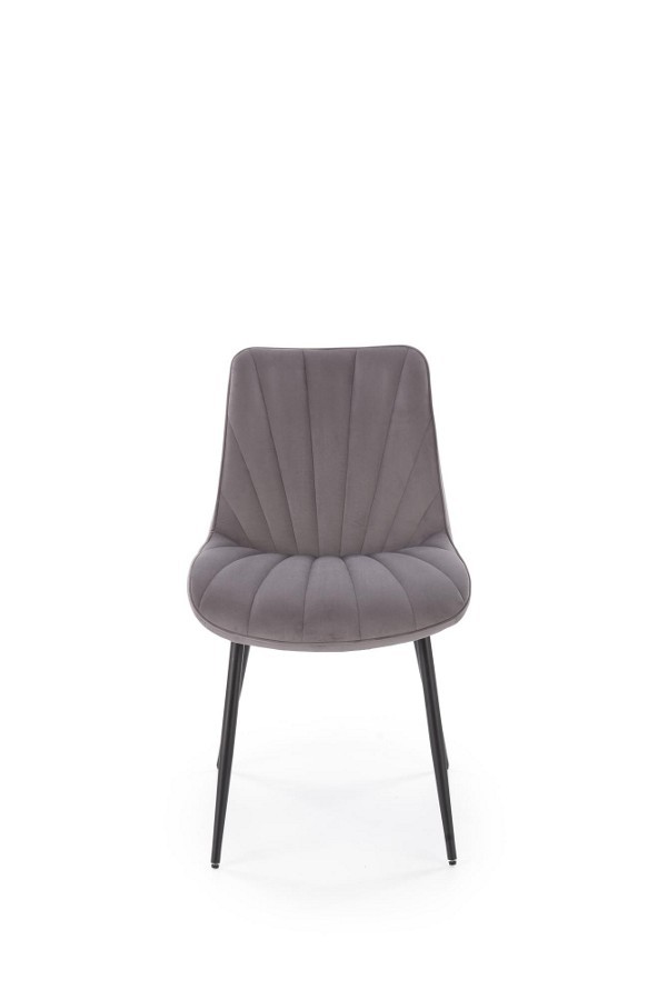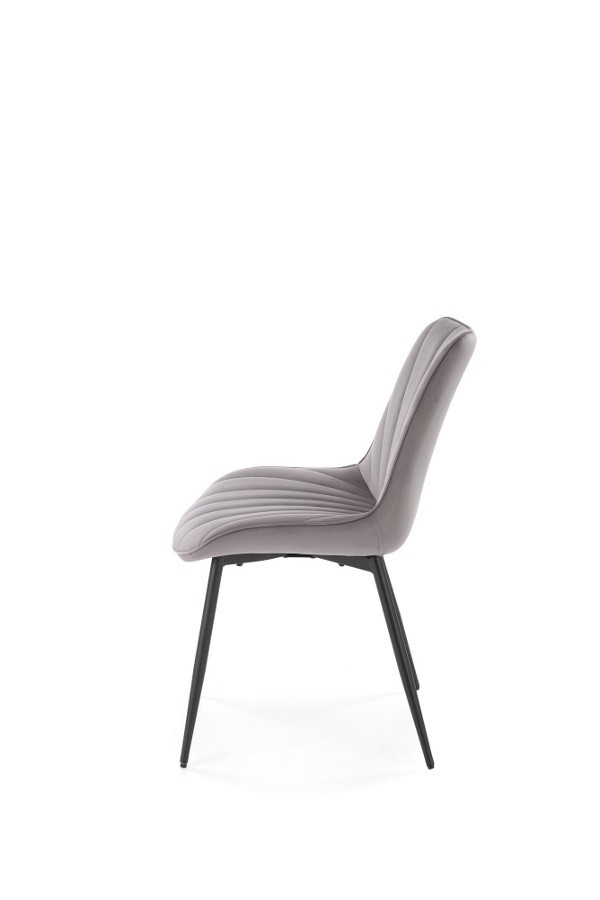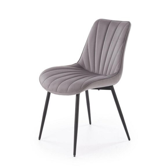 Hagyományos stílusú, kényelmes étkezőszék fém lábakkal és bársonyos Bluvel szövetkárpittal. Elegáns és praktikus választás étkezőbe vagy irodába.