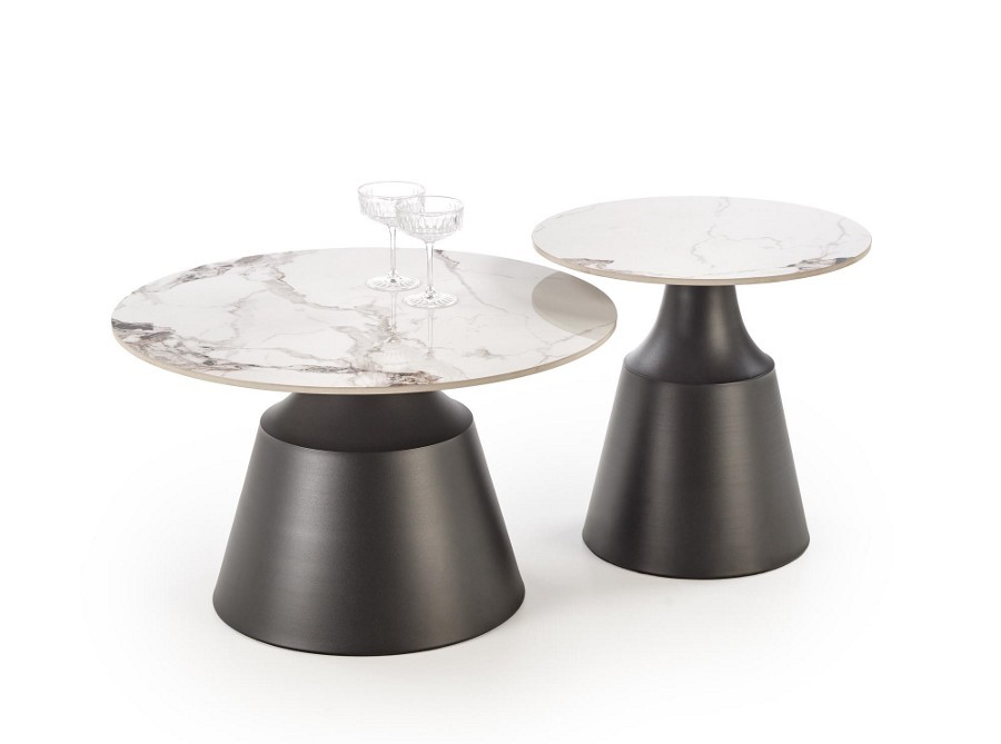 Halmar – MAGNETA | dohányzóasztal-szett ⌀50/70 – white marble