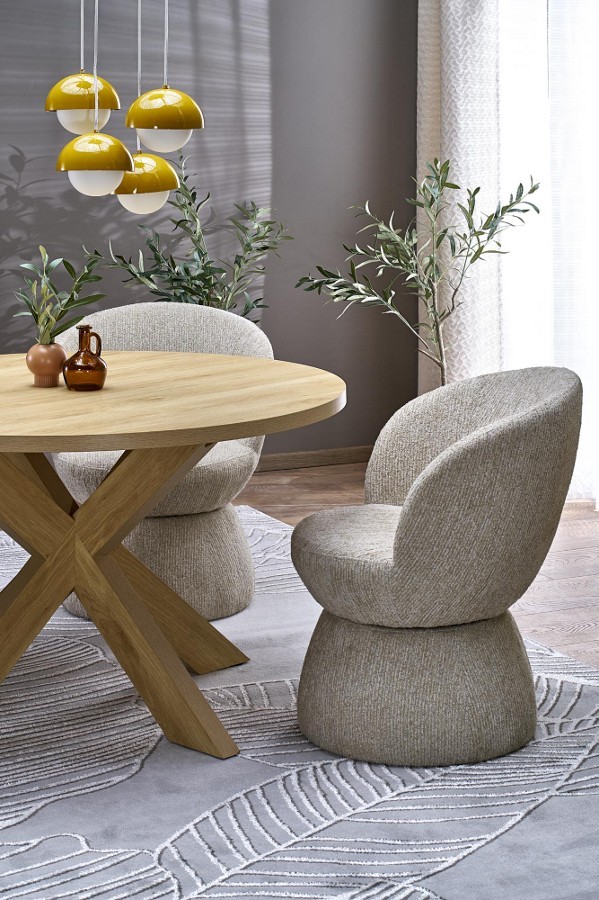 A Morus elegáns, kerek asztal, amely modern és klasszikus enteriőrökben is megállja a helyét. Melamin bevonatú MDF lapja tartós és könnyen tisztítható, a natúr színű lábak pedig harmonikusan egészítik ki a letisztult formát. Kompakt méretének köszönhetően ideális választás kisebb terekbe is.