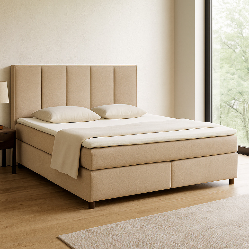 Prémium minőségű boxsrping franciaágy (alap esetben matrac nélkül), opcionálisan ágyneműtartóval.