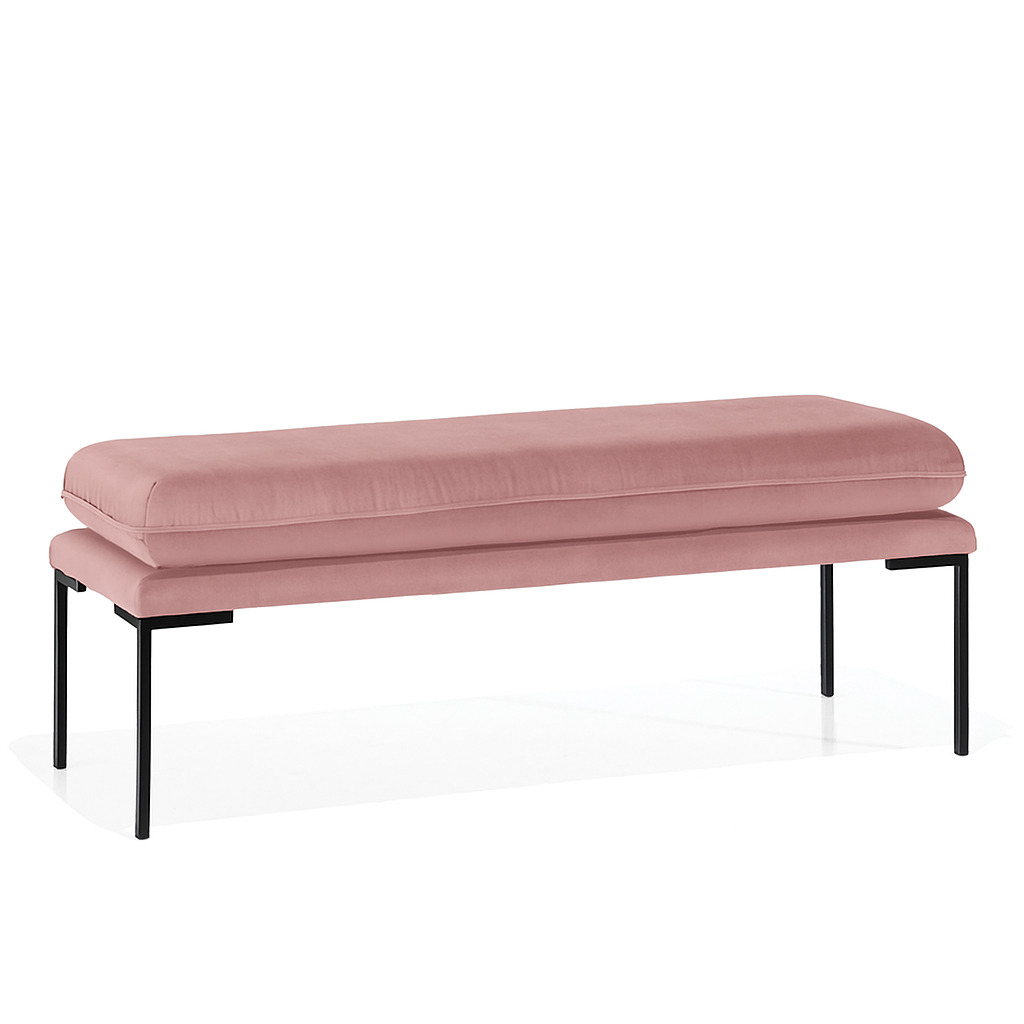 Dizájnos pad modern, fekete fém lábakkal, kárpitozott ülőfelülettel, amely egy alapból és egy kényelmes párnából áll. A szövetválaszték több száz mintából áll.