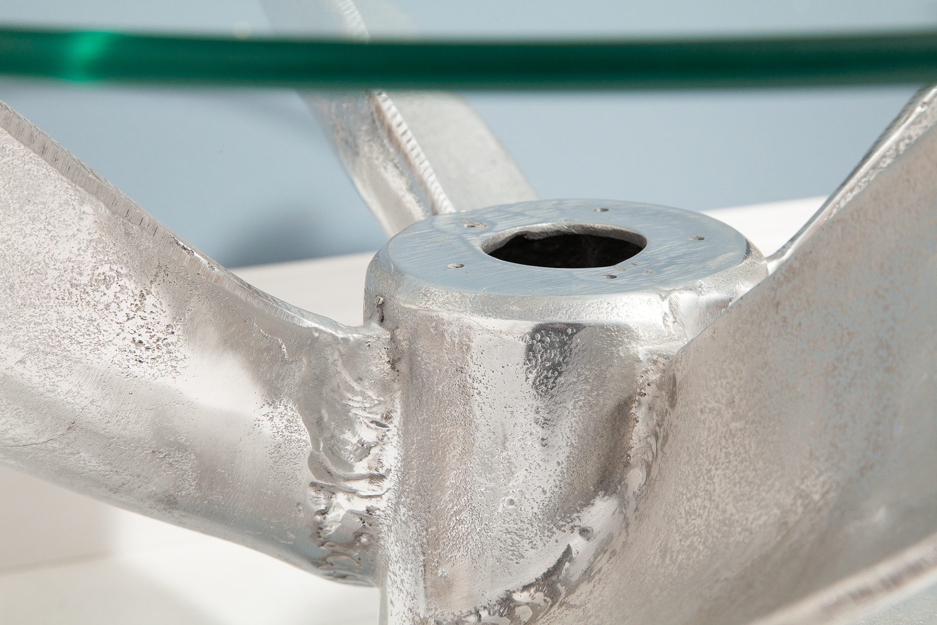 Különleges dohányzóasztal Ø 60cm- átmérőjű üveg asztallappal.