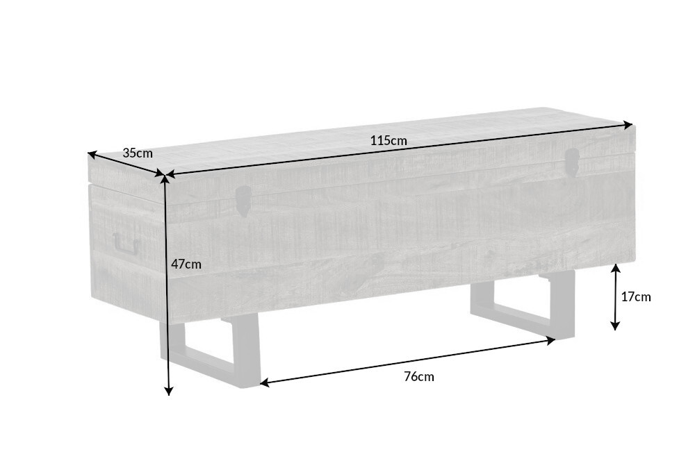 FACTORY LOFT – tárolós ülőpad natúr mangófa ülőfelülettel és fekete fémszerkezettel (115 cm)