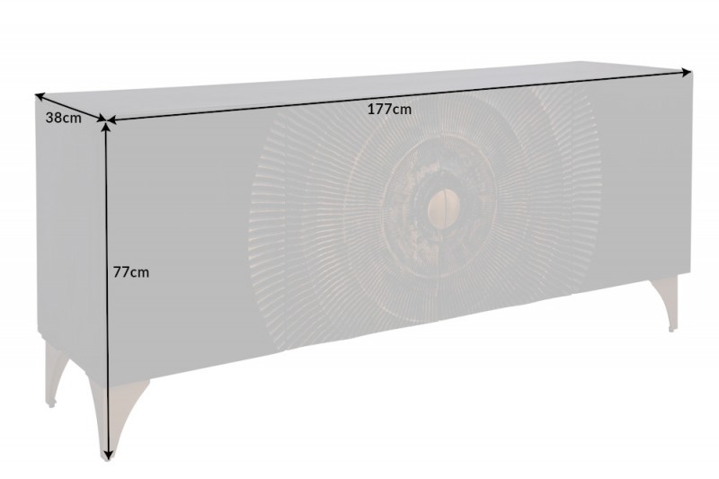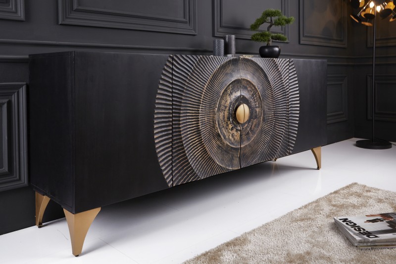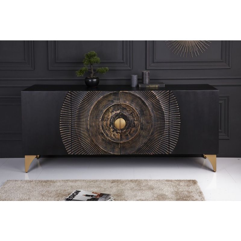 GOLDEN SUNSET – komód 180 cm, fekete-arany mangófa, 3D-faragásokkal