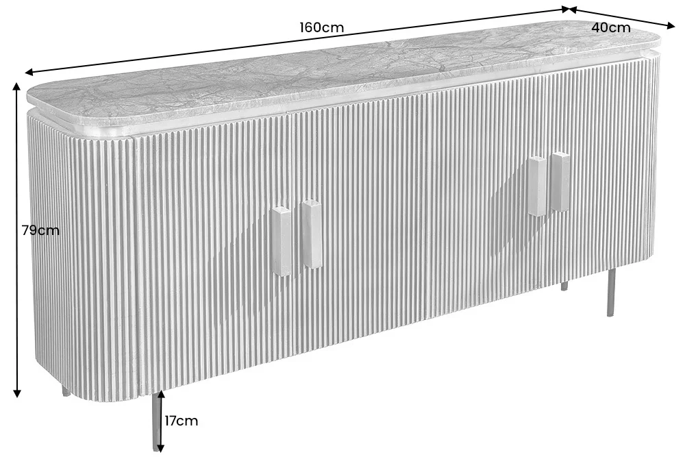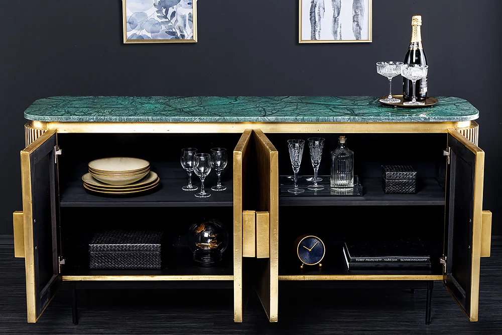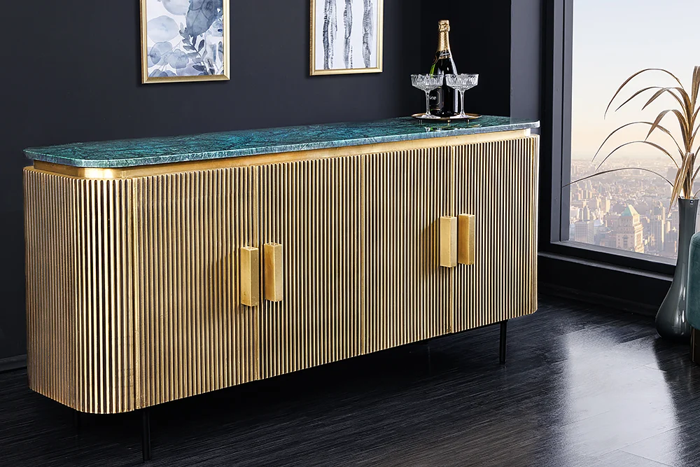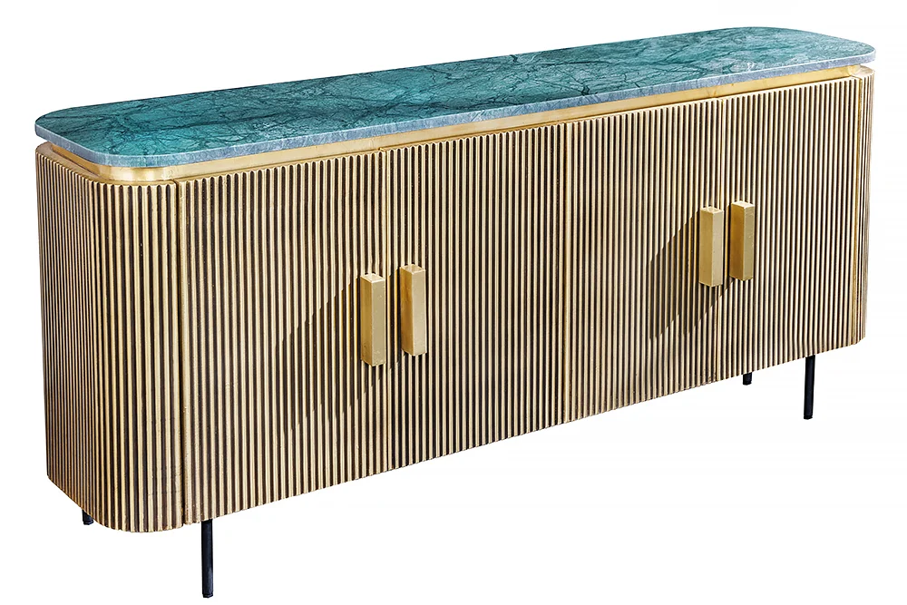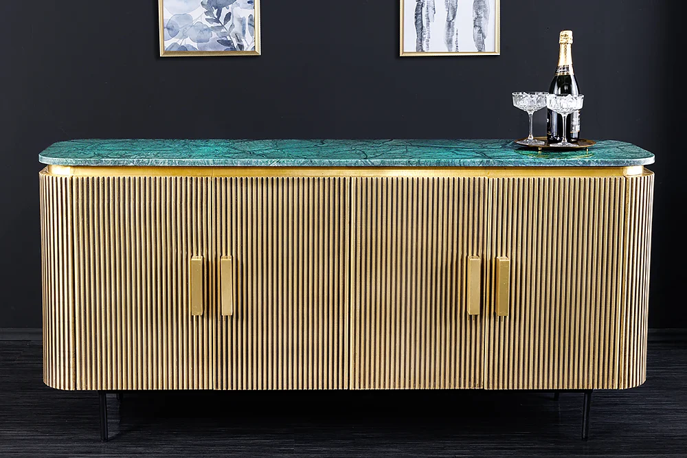 Veneziano különleges tálalószekrény mangófából, zöld jade színű műrványhatású kőlappal.