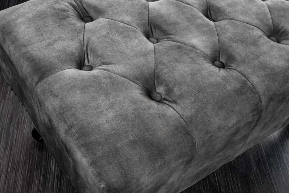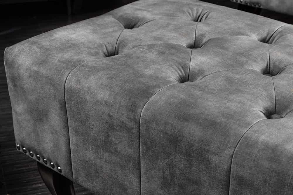 Chesterfield puff – 80 cm, szürke bársonykárpittal