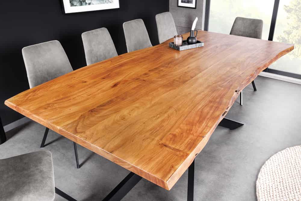 AMMUT – étkezőasztal 200 cm, akáciafa lap (35MM), fekete fém lábak, természetes éllel