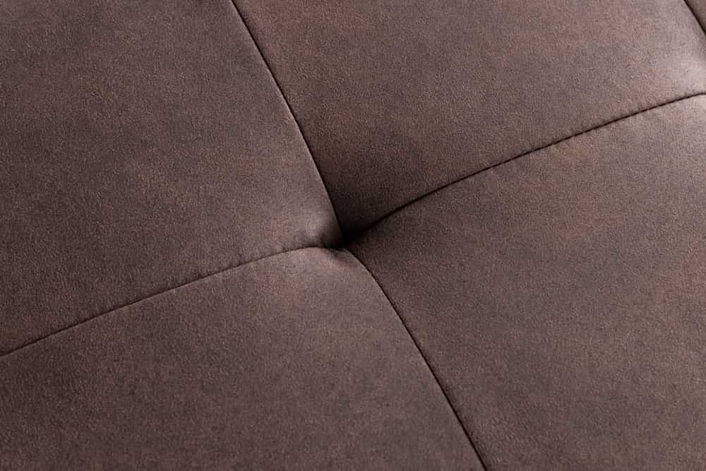 A barna mikroszálas szövet klasszikus és időtálló választás; natúr fa bútorokkal, bézs textilekkel és fekete fémelemekkel kombinálva különösen elegáns hatást kelt.