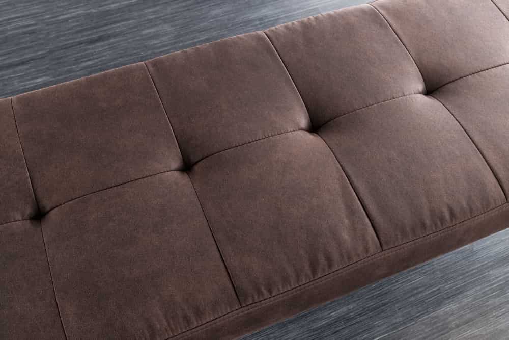 BOUTIQUE – kárpitozott ülőpad barna mikroszálas szövettel és fekete fém lábakkal (100 cm)