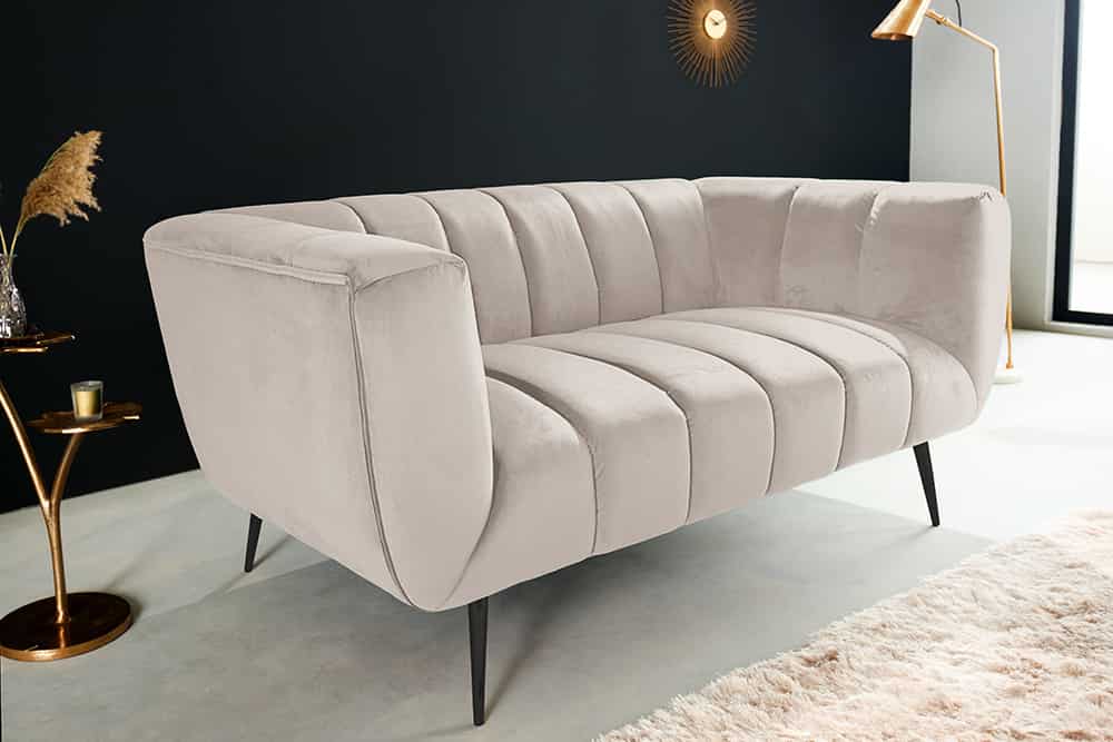 NOBLESSE – kétszemélyes design kanapé, pezsgőszínű bársonykárpittal és fekete fém lábakkal