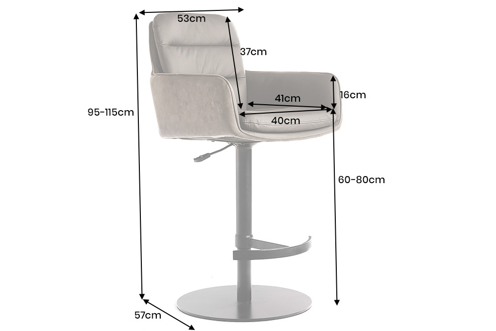 A BIG GEORGE bárszék elegánsan egyesíti a természetes anyagokat és a modern kényelmet. A taupe árnyalatú, 100%-ban valódi bőr ülőfelület finoman matt, tapintása puha és kifinomult, míg a mikroszálas háttámla meleg, texturált felületével teszi teljessé az összhatást. A fekete, porfestett fémváz stabil és időtálló alapot biztosít. A szék magassága gázlifttel könnyedén állítható, ülőrésze 360°-ban forgatható és automatikusan visszatér alaphelyzetébe. A karfák és a kényelmes lábtartó gondoskodnak az ergonomikus ülésről, a tulipán formájú talp pedig stílusos megjelenést kölcsönöz.