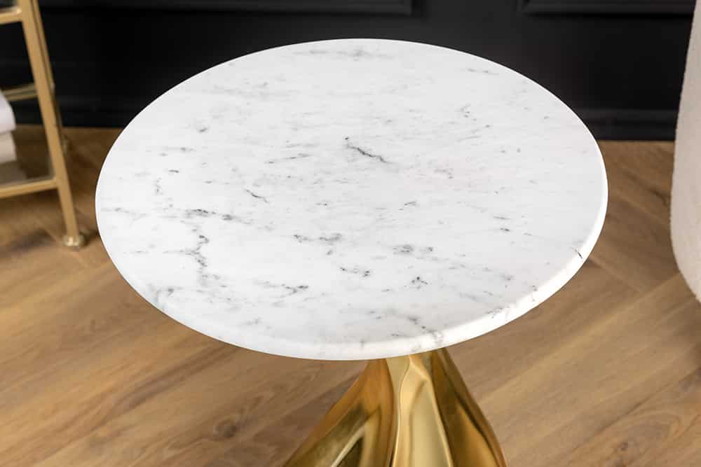TEAR – kerek kisasztal, fehér márvány lappal és sárgaréz színű vázzal (60 cm)