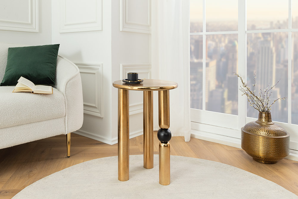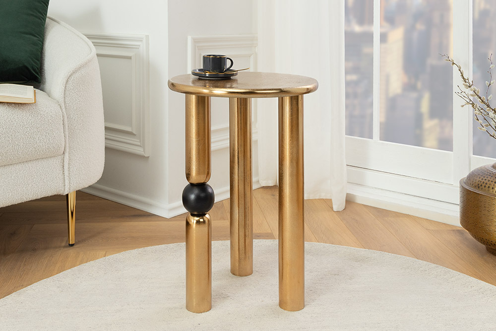 ABSTRACT – kerek kisasztal (54 cm), arany és fekete fém, kézzel készült