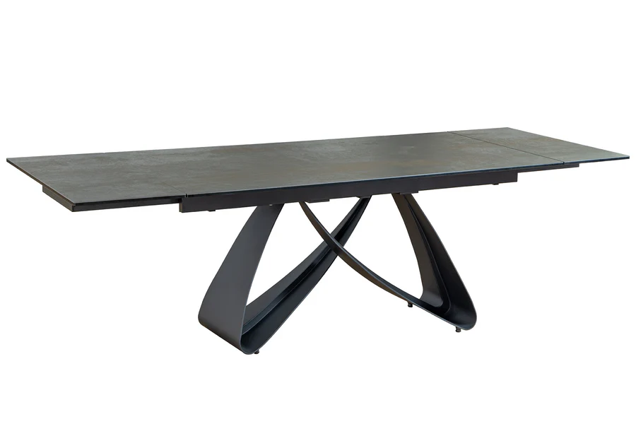 Modern KERÁMIALAPOS bővíthető étkezőasztal, rozsdamentes acél vázzal.