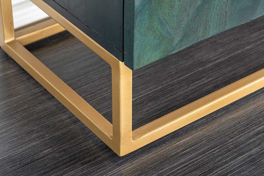SCORPION – komód 180 cm, türkiz-arany mangófa, arany fém lábakkal