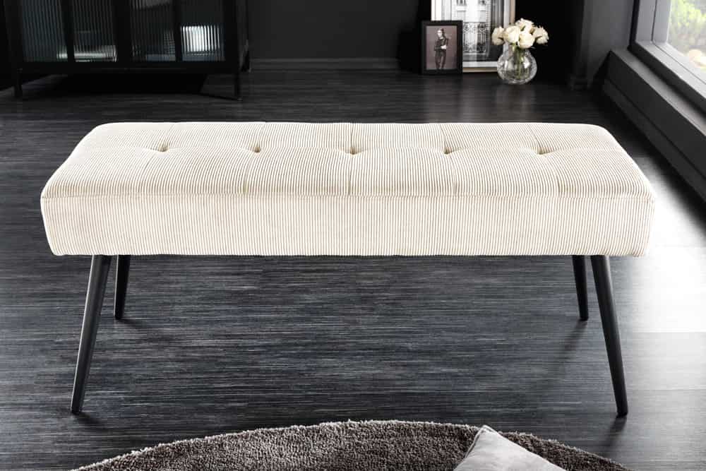 BOUTIQUE – modern ülőpad beige kord kárpittal és fekete fém lábakkal (100 cm)