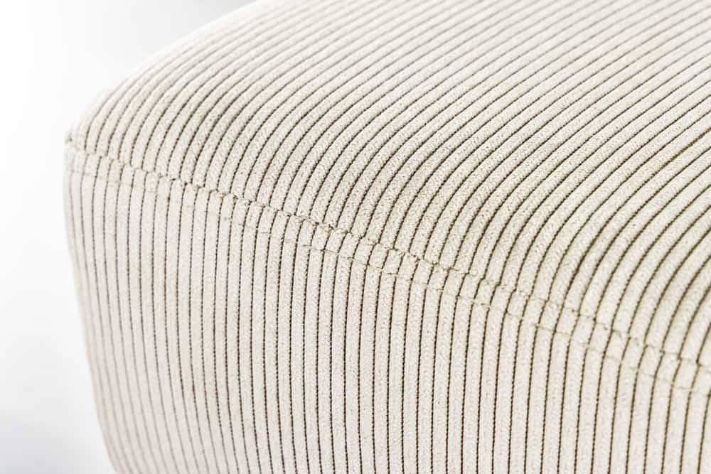 A BOUTIQUE ülőpad letisztult formája és kényelmes, kárpitozott ülőfelülete modern és természetes enteriőrökben is jól használható. A kord szövet és a fekete fém lábak kombinációja könnyed, időtálló megjelenést ad.