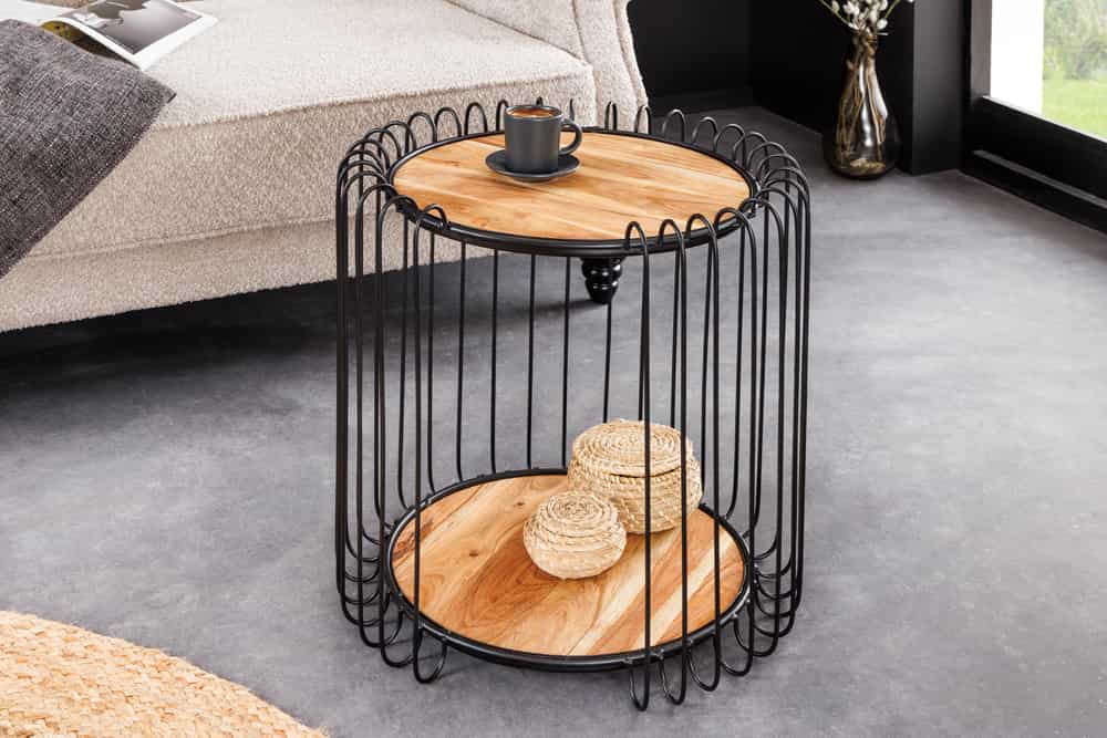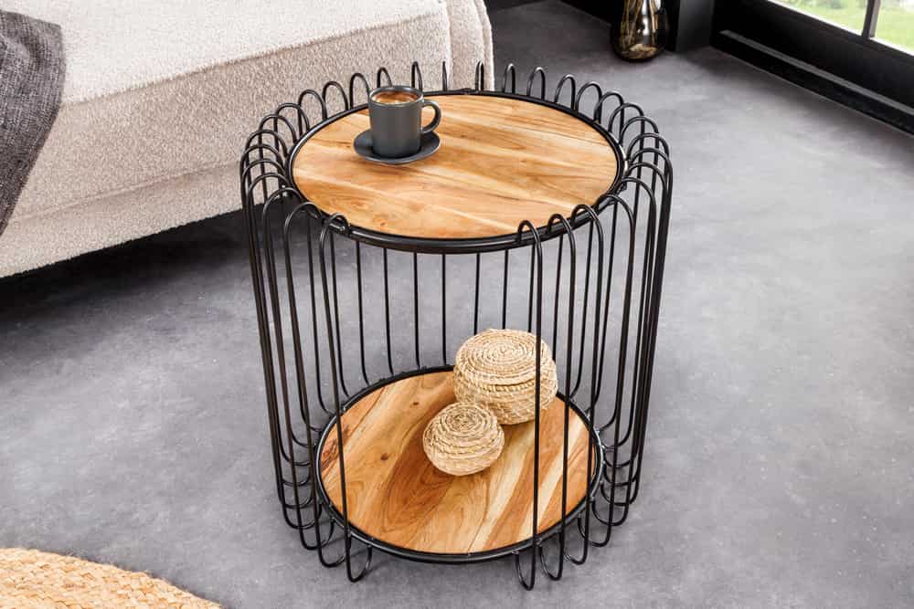 Tömör akáciafából készült, természetes hatású kisasztal masszív, organikus formával. Egyedi erezetű felülete meleg, természetközeli hangulatot ad, modern és loft terekben is jól működik.