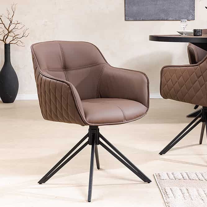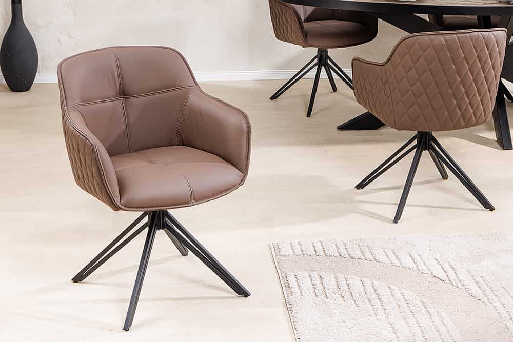 EUPHORIA – forgatható étkezőszék, barna valódi bőrkárpittal és fekete fém lábazattal