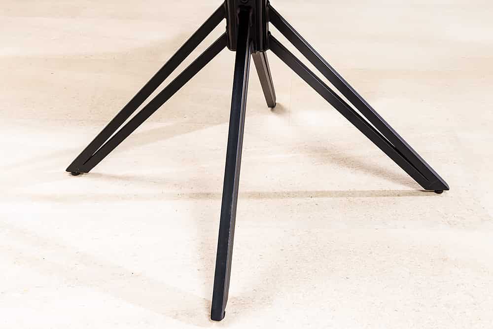 Az EUPHORIA forgatható étkezőszék a prémium kényelem és a kortárs retró stílus tökéletes egyensúlyát képviseli. A taupe árnyalatú valódi bőrkárpit elegáns, semleges tónusaival harmonikusan illeszkedik bármilyen enteriőrbe. A dekoratív dísztűzés finoman kiemeli a kézműves kidolgozást, míg a fekete, porszórt fém lábazat modern kontrasztot és megbízható stabilitást nyújt. A 180°-ban forgatható ülés Auto-Return funkcióval automatikusan visszatér eredeti helyzetébe, a magasságkiegyenlítő lábak pedig biztosítják a tökéletes egyensúlyt minden padlón.
