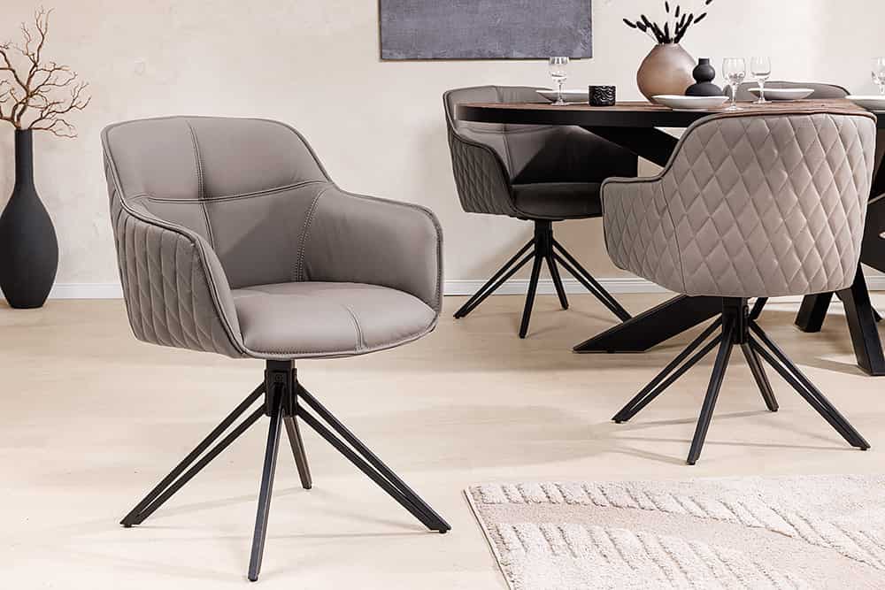 EUPHORIA – forgatható étkezőszék, taupe színű valódi bőrkárpittal és fekete fém lábazattal