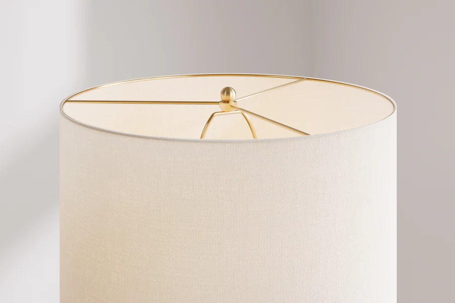 Modern, elegáns asztali lámpa fehér textilernyővel és fekete–arany kerámia talppal. Látványos, luxushatású darab, amely karaktert visz a térbe.