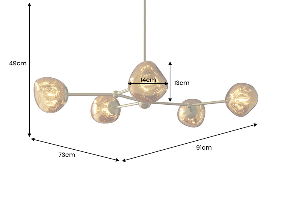 LIQUID DIAMOND – füstszínű, 5-gömbös függőlámpa (91 × 49–73 cm)