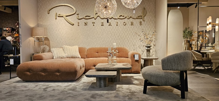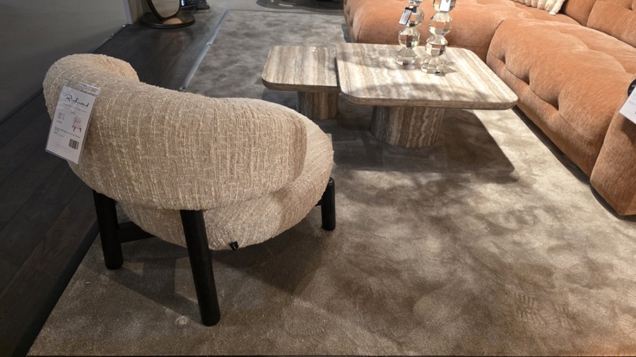 Letisztult, szoborszerű megjelenésű dohányzóasztal-szett a Richmond Interiors Denizly kollekcióból. A modern, geometrikus formák és a szürke, travertin-hatású kerámia felület harmonikus kontrasztot alkotnak, miközben stabil, tömör hatást keltenek.