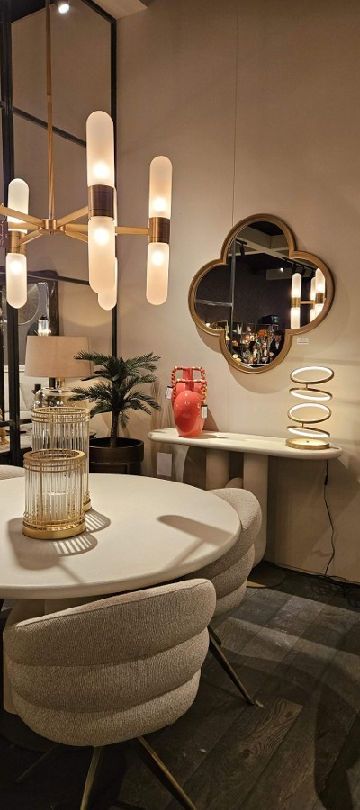 Minimalista, modern vagy légies enteriőrökben mutat a legjobban. Világos kárpitos székekkel és neutrális falakkal elegáns, nyugodt összhatást ad az étkezőnek.