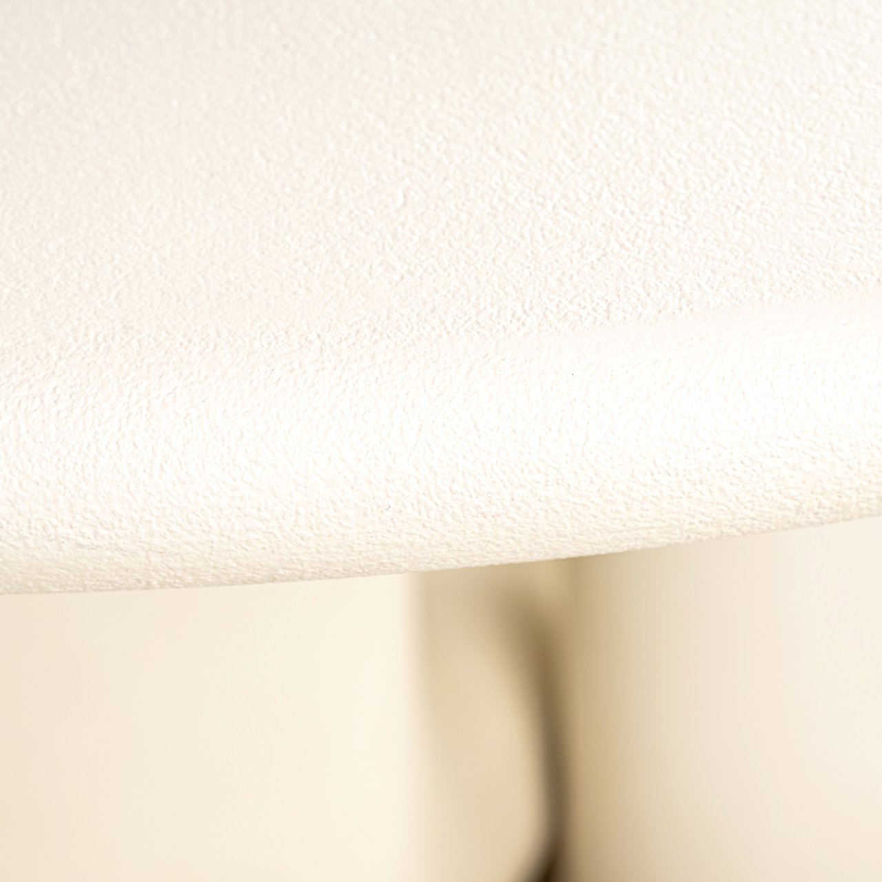 Szoborszerű formavilágú étkezőasztal a Richmond Interiors Winslow kollekcióból. A láncszem-szerűen egymásba kapcsolódó, ívelt lábak modern, mégis lágy hatást keltenek. A fényes fém talplemez és a matt fehér felület kontrasztja elegáns, kiegyensúlyozott összhangot ad az asztalnak.