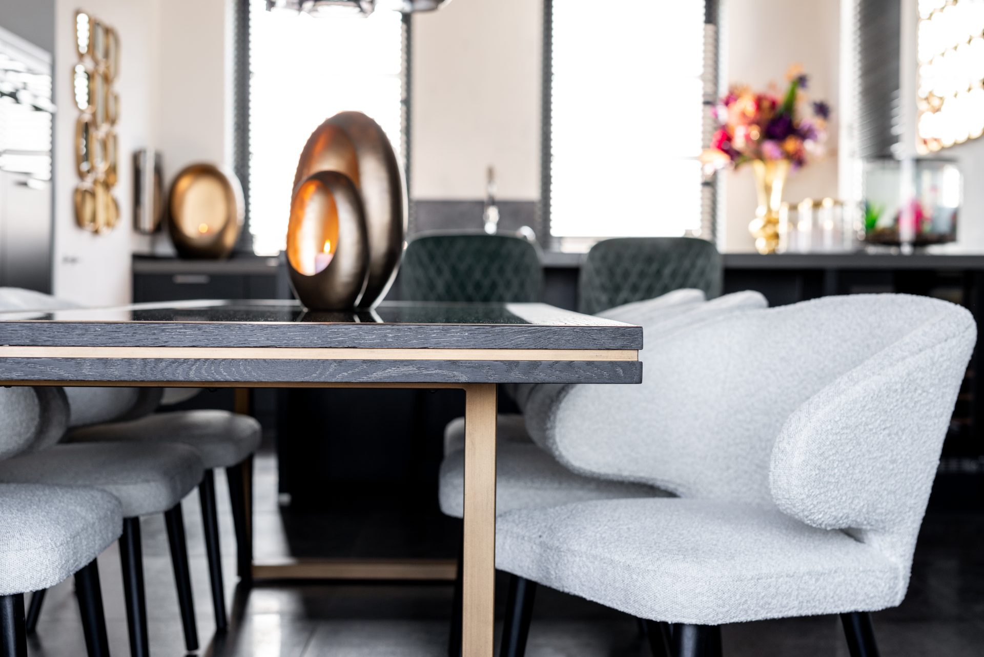Elegáns étkezőszék puha szövet bevonattal, feketére pácolt bükkfa lábakkal. A székhez illő bárszék is elérhető.